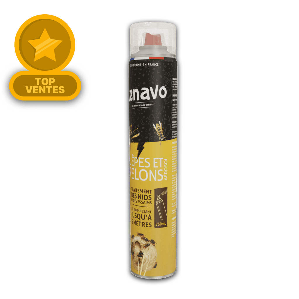 Le produit KENAVO® Aérosol anti guêpes et frelons 750mL est un insecticide spécialement conçu pour traiter efficacement les nids de guêpes, frelons et frelons asiatiques en extérieur grâce à sa formule foudroyante.