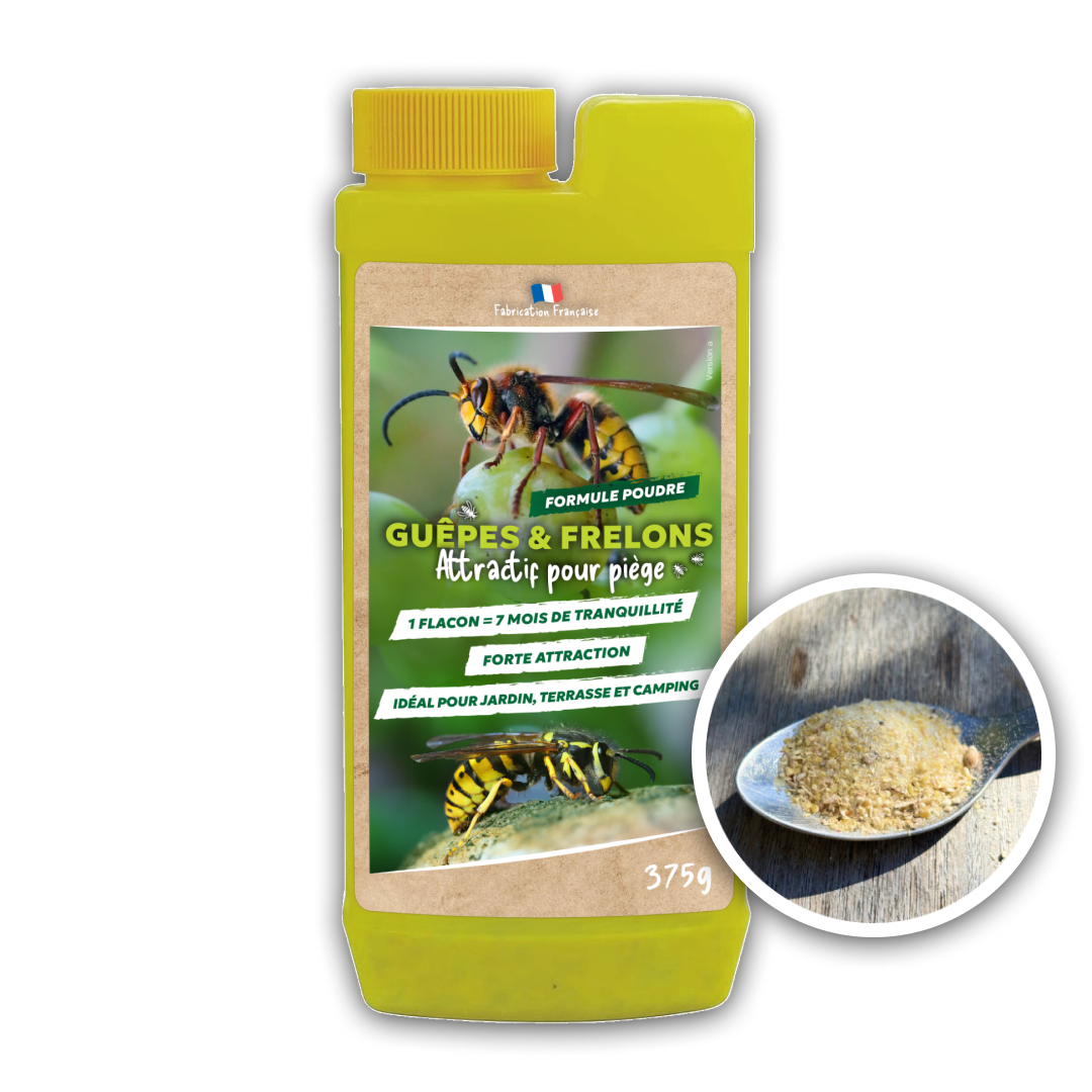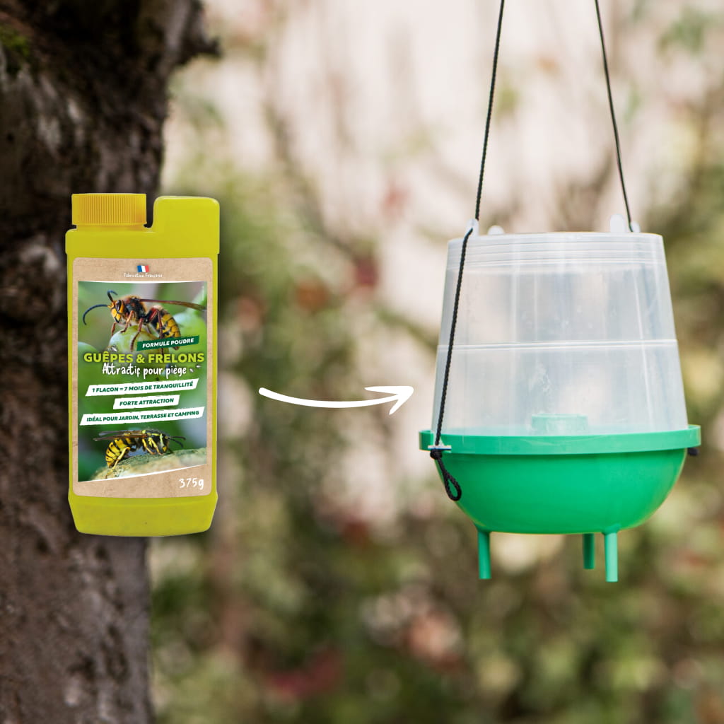 Pour rappel, ce produit est à utiliser avec notre piège à guêpes et frelons : ce piège est une solution redoutable pour lutter contre les guêpes et frelons en extérieur.
