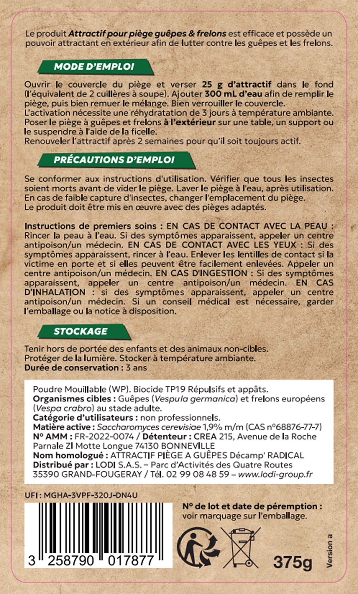 Nom homologué : ATTRACTIF PIEGE A GUEPES Décamp’ RADICAL