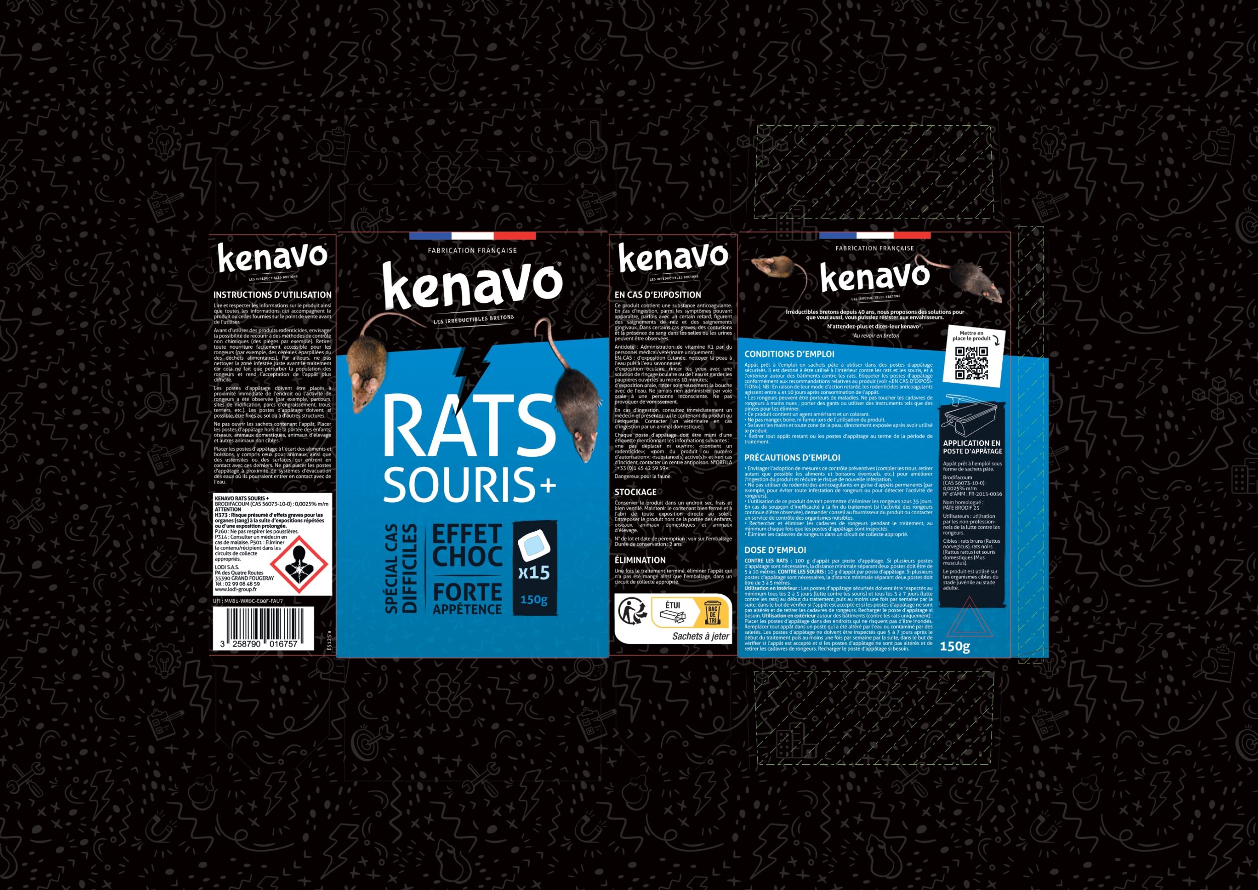 Pour traiter une infestation de rats ou de souris, vous aurez besoin du produit KENAVO® Appâts pâtes fraîches anti rats et souris, d’un poste d’appâtage rats ou d’une boîte appât souris et d’une paire de gants. Lisez attentivement les informations présentes sur l’emballage.